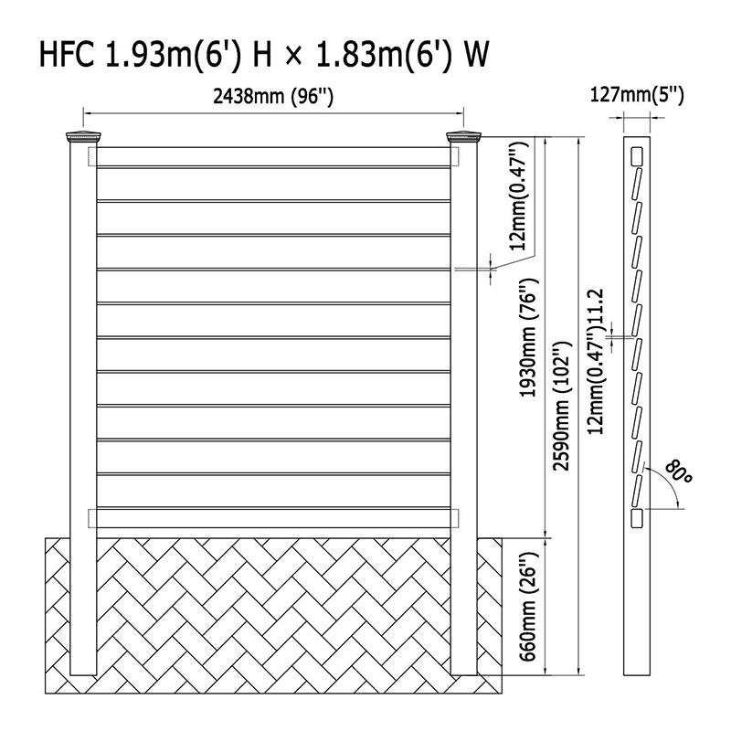 Sa standardnom visinom od 72 inča, naša polubolna ograda za privatnost dizajnirana je tako da pruži dovoljno privatnosti bez potpuno zatvaranja vašeg vanjskog prostora. Za one koji traže prilagođena rješenja, dostupne su različite visine i širine kako bi zadovoljile vaše specifične potrebe. Standardna širina je također 72 inča, što olakšava konfiguriranje izgleda kako bi odgovarao vašem svojstvu.